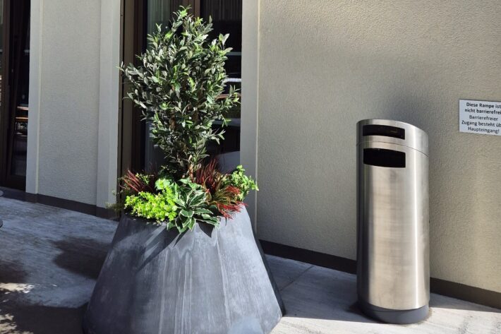 La création d’une nouvelle zone de rencontre a été le déclic pour repenser le système de collecte des déchets de la commune autrichienne de Kapfenberg. L’idée était de remplacer les poubelles existantes par de nouveaux modèles qui s’intègrent parfaitement dans le paysage urbain du cœur de ville, aux abords de la haute école spécialisée FH JOANNEUM. Le défi était double : trouver la parade à la surface du sol en pente, qui rend met en péril la stabilité des poubelles, et répondre à l’exigence esthétique avec des conteneurs en acier inoxydable assortis aux bacs à fleurs et aux supports à vélos à proximité immédiate. Heureusement, la solution au problème avait un nom tout trouvé : la Poubellerequin !
